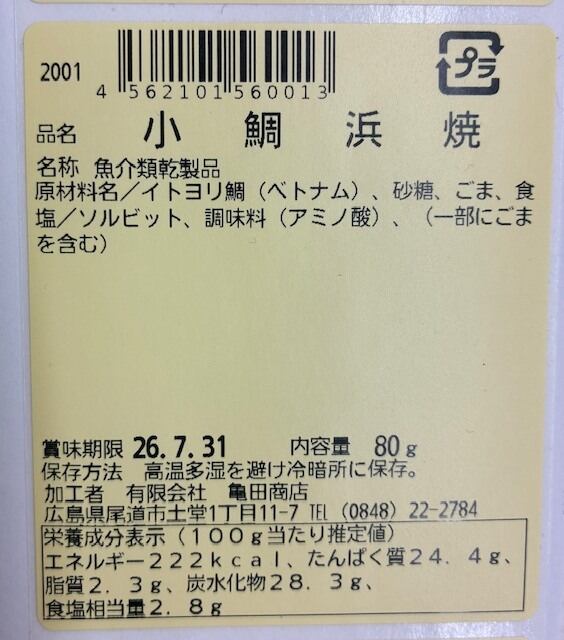 小鯛を甘辛く仕上げています。そのまま召し上がれます。