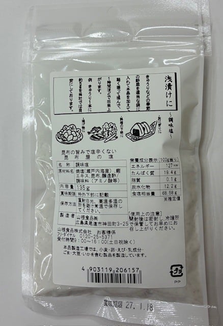 瀬戸内海産焼塩と北海道産昆布を使用。