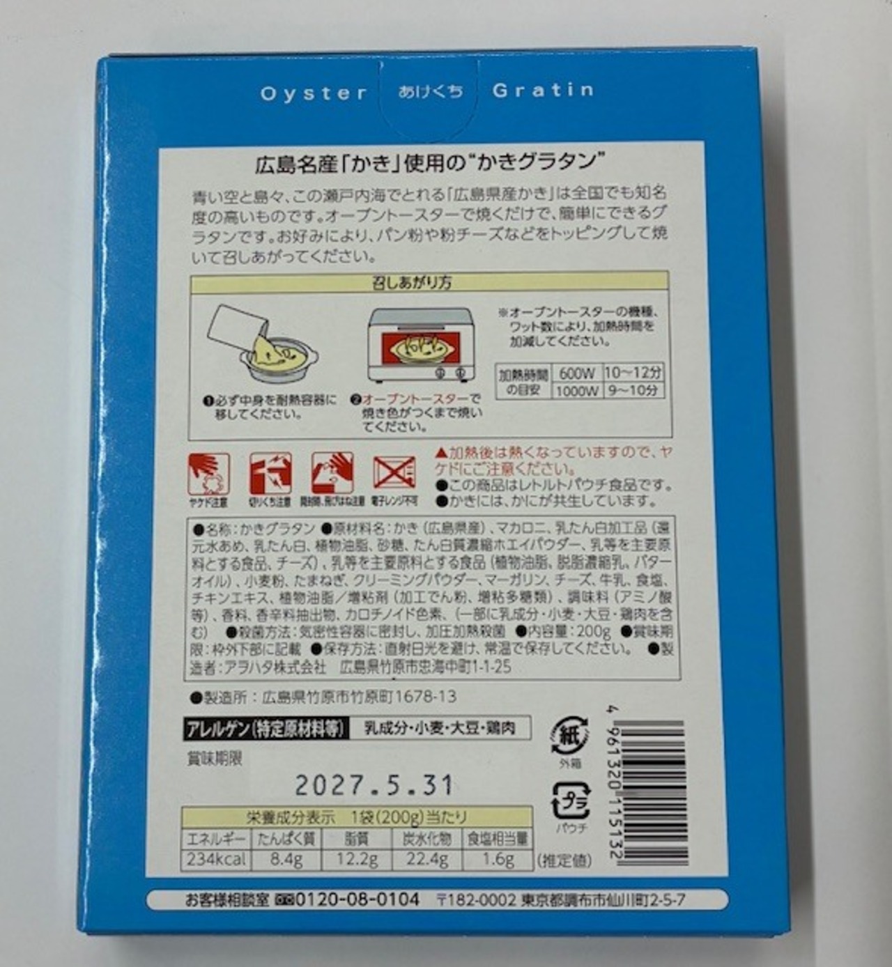 広島名産の牡蠣を使用した、手軽に温めて楽しめる1人前のかきグラタンです。