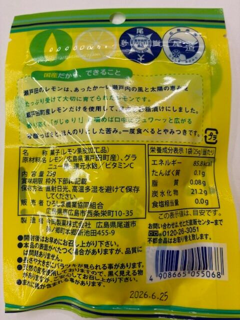 瀬戸田町産レモンの皮の砂糖漬けです。