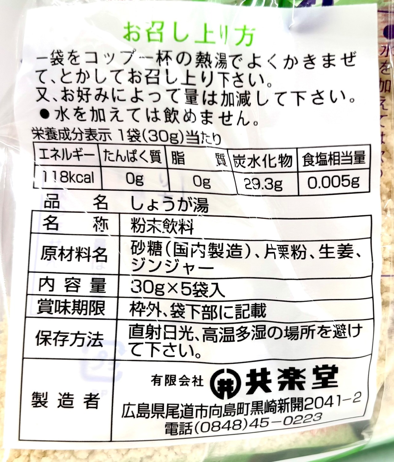 共楽堂しょうが湯